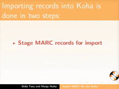 Outline: సూపర్ లైబ్రేరియన్ ఖాతా కేటలాగ్ యొక్క విభాగం దిగుమతి కోసం స్టేజ్ MARC రికార్డులు రిజర్వాయర్లో స్టేజ్ రికార్డులు డౌన్ లోడ..